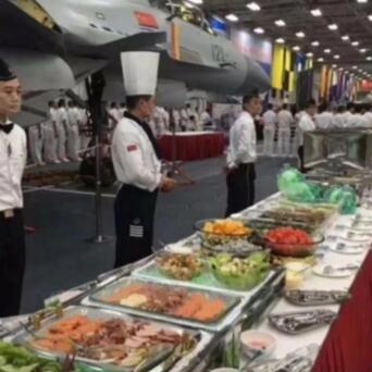 清晨五点,天还没亮透,山东舰的巨型厨房已经灯火通明。